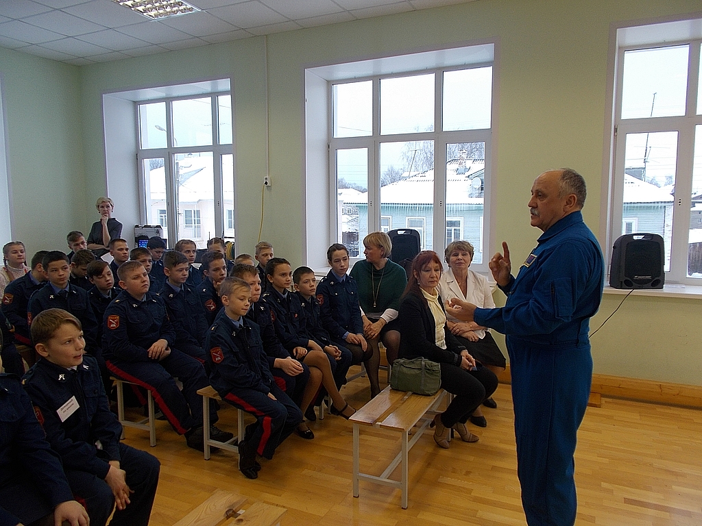 13 декабря – важный и торжественный день в МБОУ "СОШ №2 с кадетскими классами". С самого утра проходили мероприятия, в которых принял участие лётчик – космонавт, Герой России, участник Межрегионального проекта «Беляевские чтения» Усачёв Юрий Владимирович.