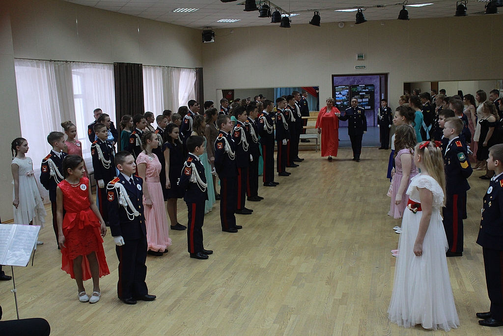 Под звуки музыки духового оркестра кружились в танце прекрасные пары. В очередной раз мальчишки и девчонки – совсем еще юные кадеты, нарядные и счастливые, собрались в танцевальном зале, что бы отдать дань воинской традиции. В программе бала были общие для исполнения танцы: «Полонез», «Падеграс», «Вальс-прогулка», «Полька-кокетка» и «Полька-бабочка», «Полька-тройка», «Краковяк» и показательные. Каждый кадетский класс подготовил постановочный танец-дивертисмент: девятый – танго, восьмой – вальс «Элегия» и русскую кадриль, седьмой – французскую кадриль, шестой – «Хрустальный вальс», 4 и 5 классы – чешскую польку, третий – «Школьный вальс».