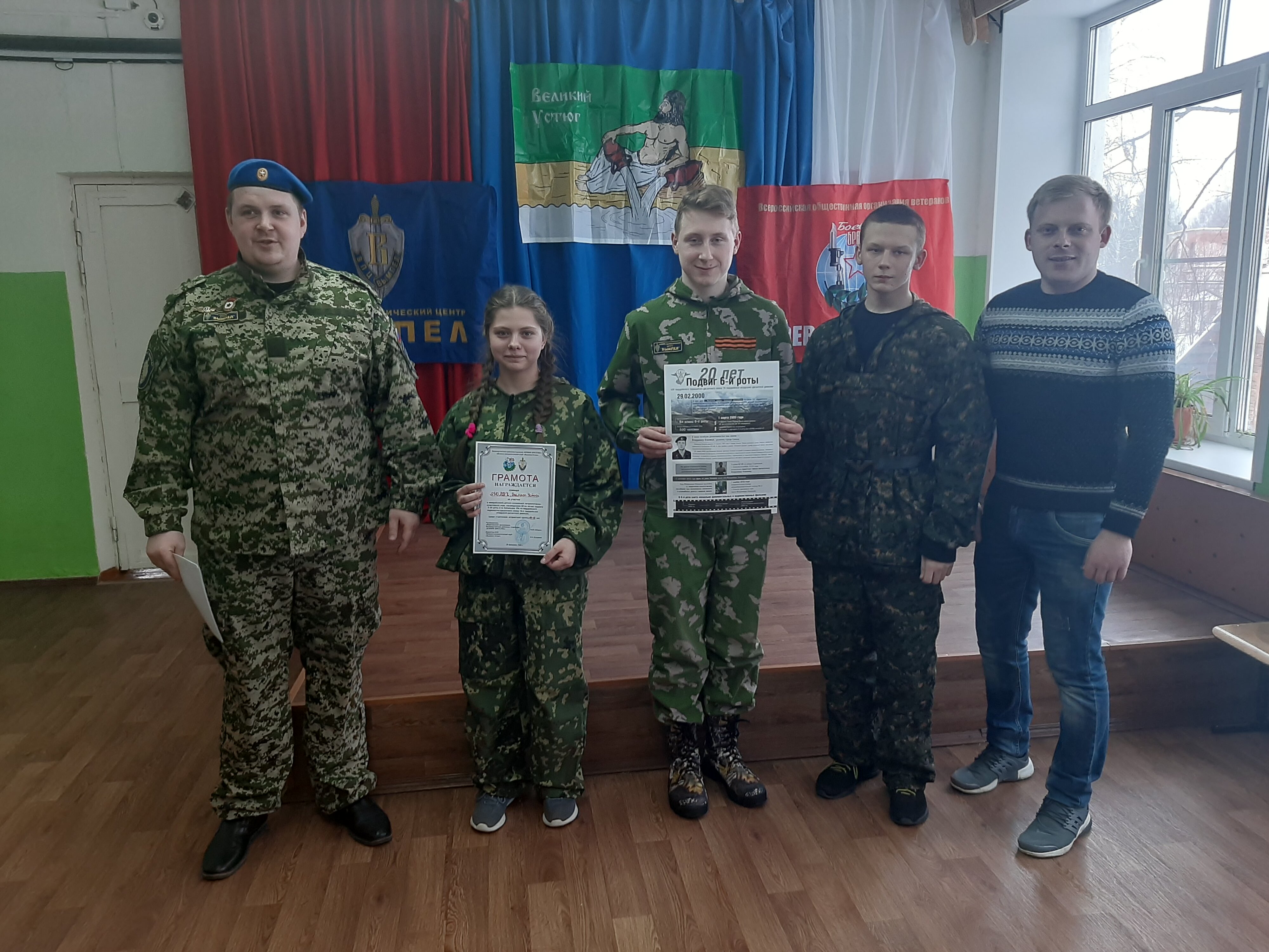?команда МБОУ "Усть-Алексевская СОШ" (Юнармия), руководитель - Офицеров Д.В.