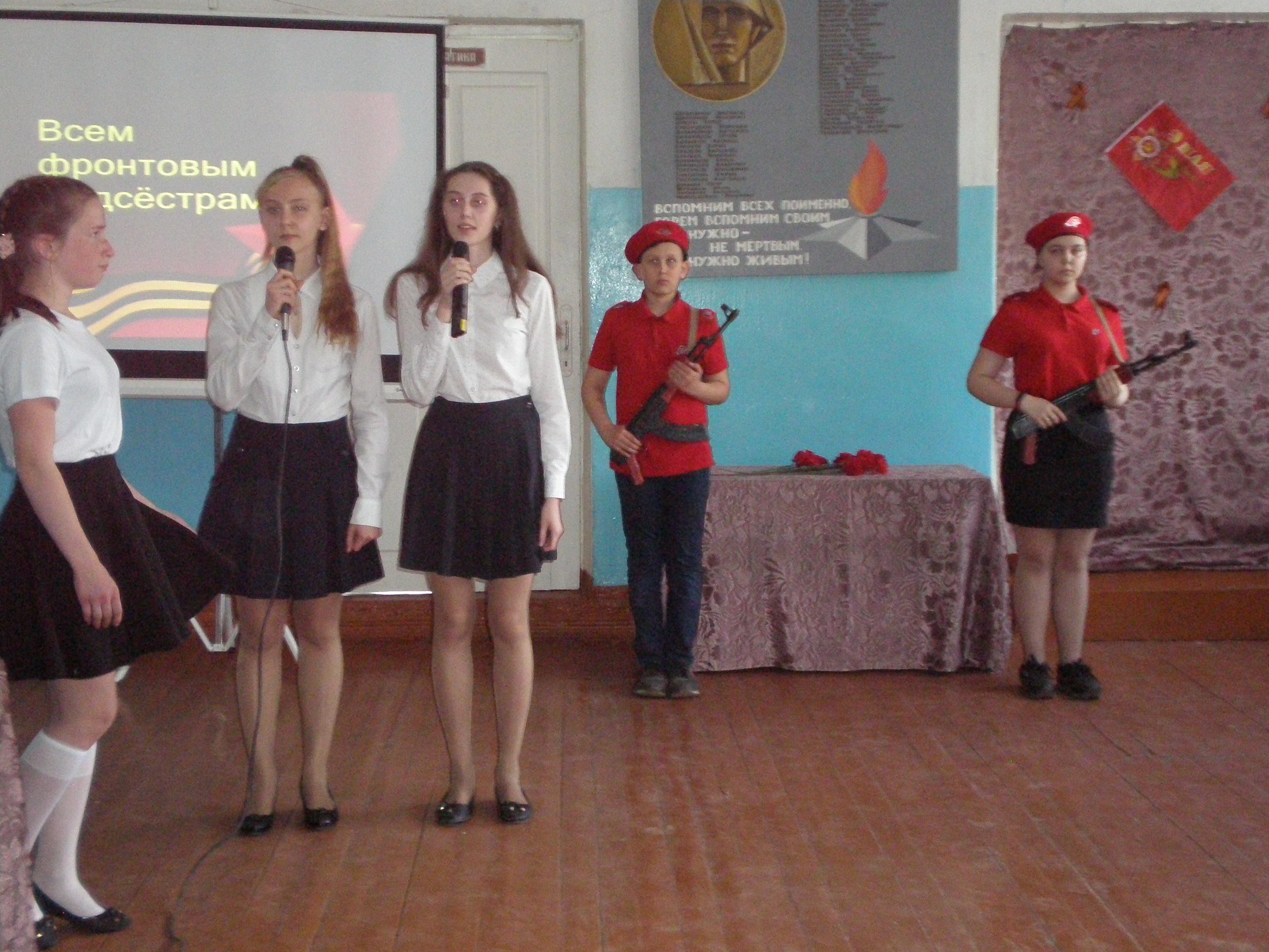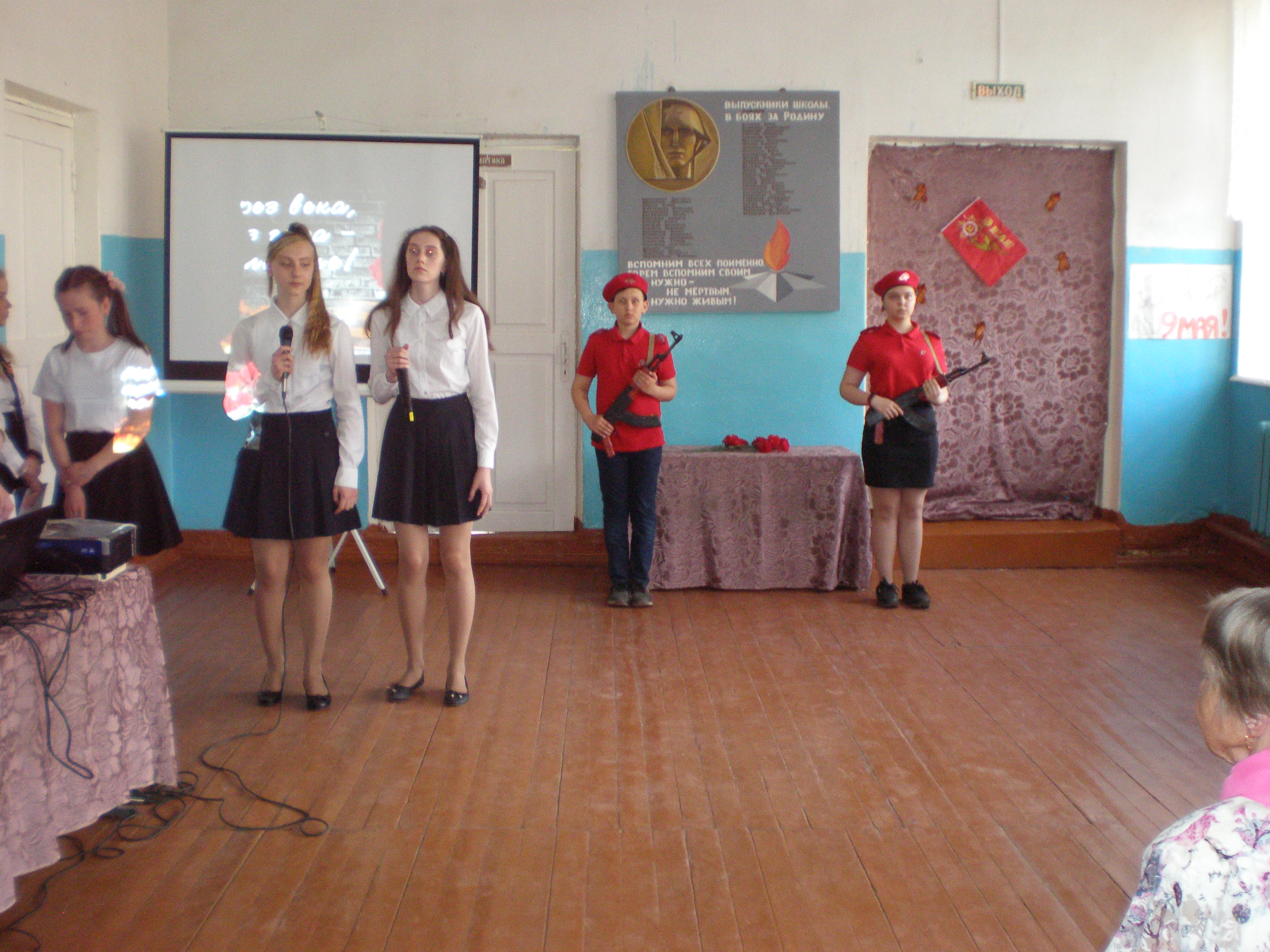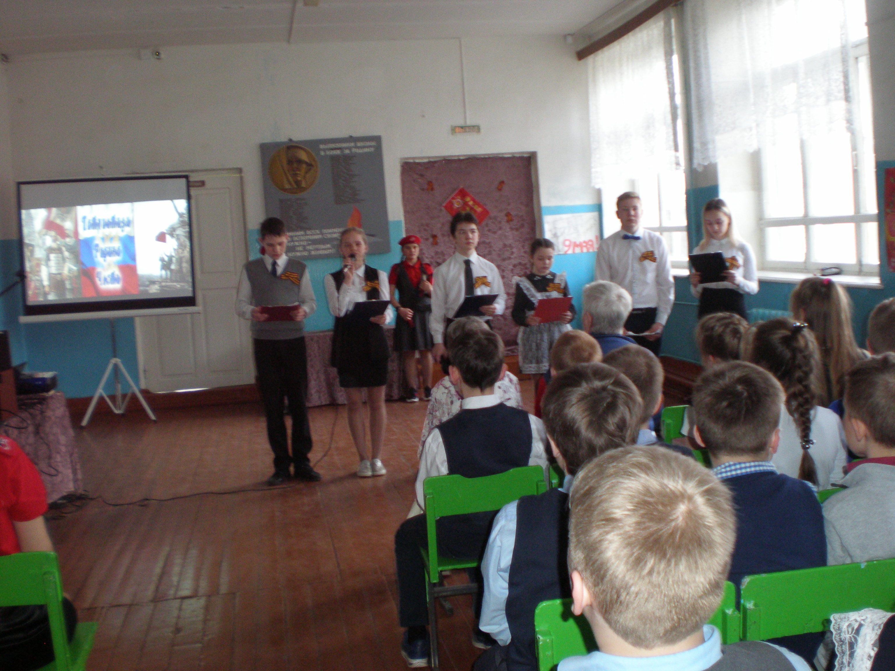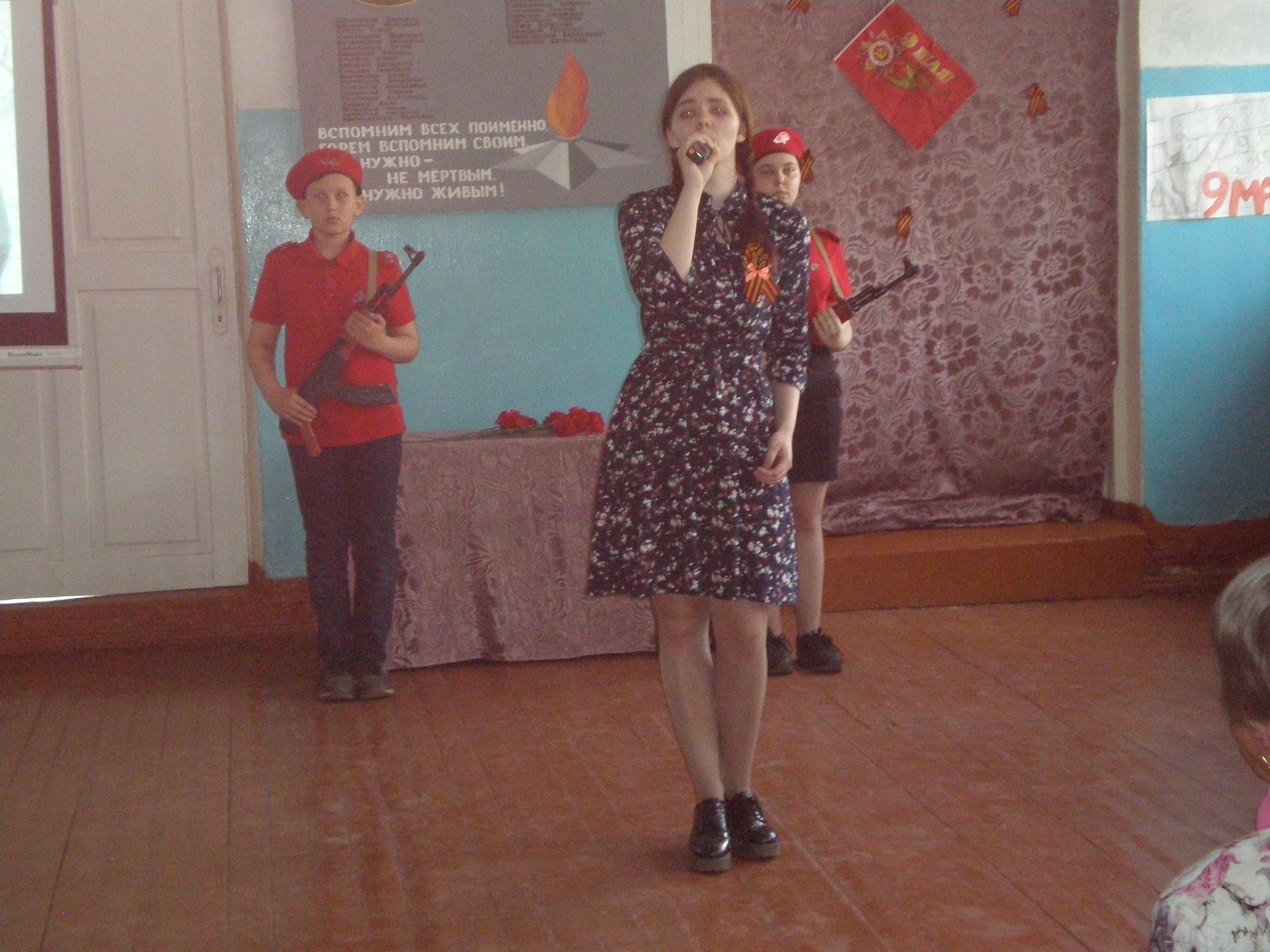 6 мая в МБОУ «СОШ №9» проходило торжественное мероприятие, посвящённое 74-летию Великой Победы. Учащимся школы, педагогам, ветеранам педагогического труда была предоставлена литературно – музыкальная композиция «1418 дней и ночей». Прозвучали проникновенные слова о великом подвиге советского народа, подготовлена презентация, школьный хор, ансамбли «Динамика», «Дети солнца» исполнили замечательные песни военного времени «Катюша», «Синий платочек», «На Безымянной высоте!» Заключительным аккордом стал танец учащихся 4а класса и песня в исполнении ансамбля «Динамика» «Я хочу, чтобы не было больше войны»