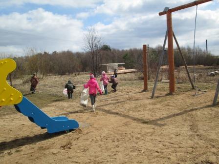 Школьники убрали мусор на территории школы и игровой площадки.