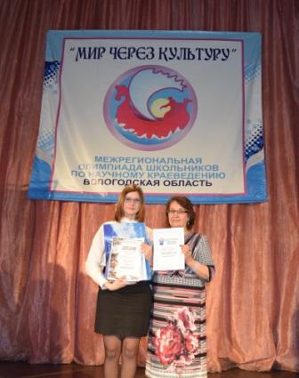 По итогам конкурсных испытаний Бычихина Надежда награждена Дипломом IIстепени XXIIмежрегиональной олимпиады школьников по научному краеведению «Мир через культуру» в секции «Летопись Земли», Кубасова Нина – в Дипломом III степени XXIIмежрегиональной олимпиады школьников по научному краеведению «Мир через культуру» в секции «Судьба России в судьбах земляков». Научные руководители Крюкова Людмила Леонидовна, педагог дополнительного образования МОБУ ДОД «ДДТ г. Великий Устюг» и Бычихина Ольга Васильевна, учитель химии и географии МОУ «Полдарская СОШ» – Благодарственными письмами АОУ ДОД ВО «Региональный центр дополнительного образования детей» за подготовку победителей и призёров олимпиады.