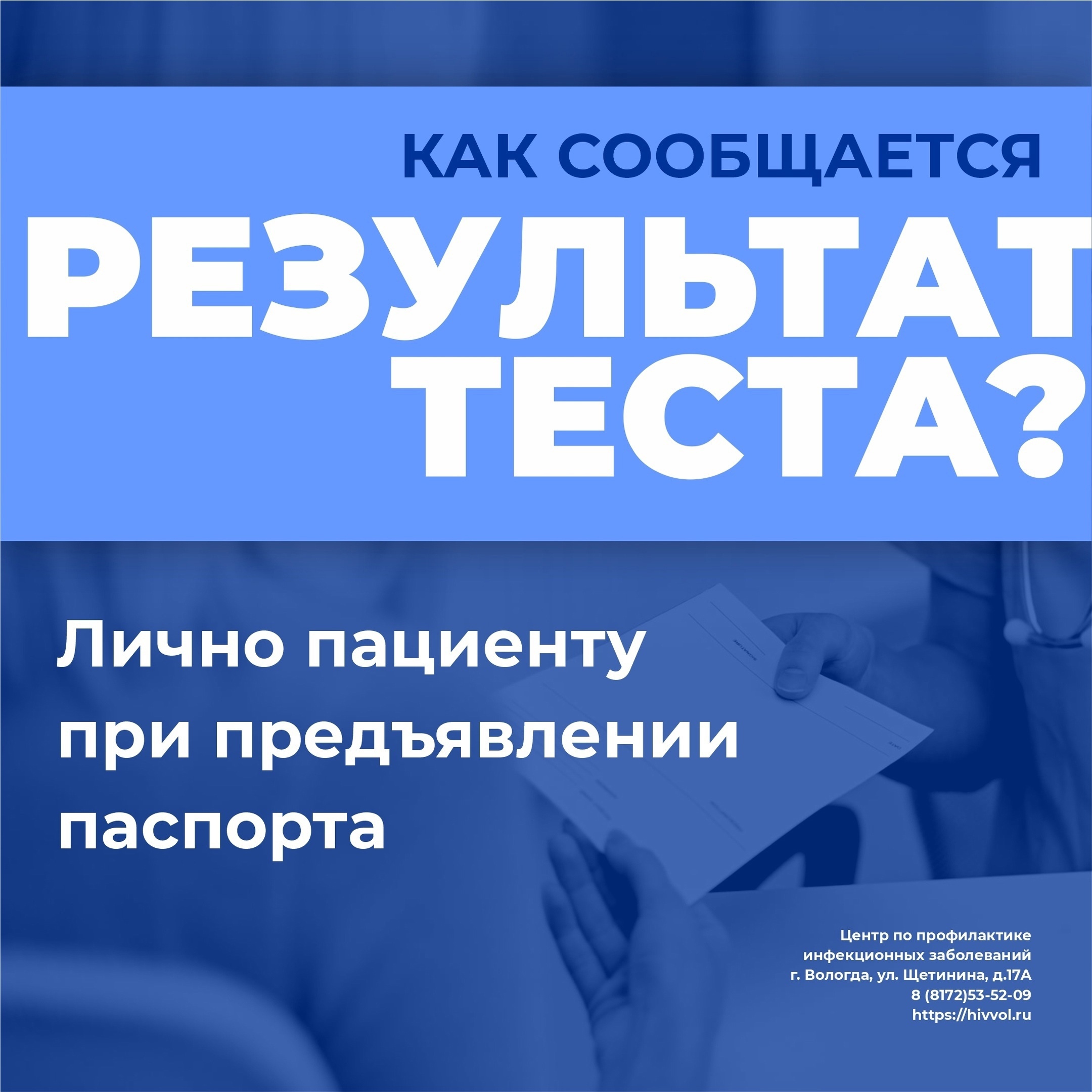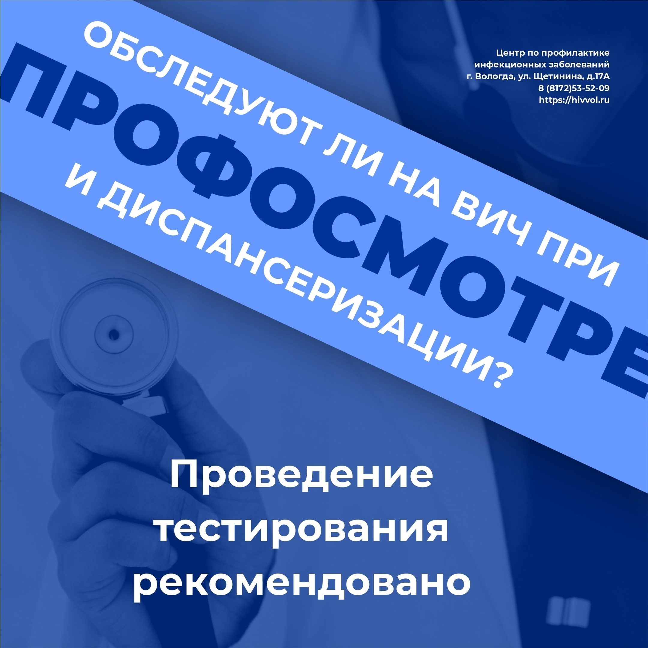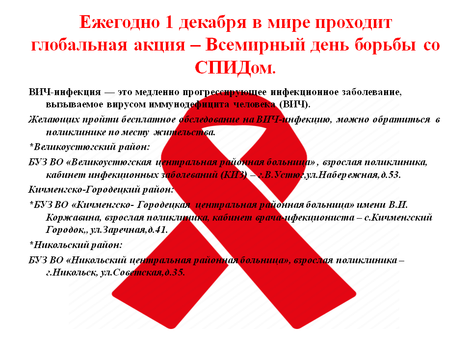 Желающих пройти бесплатно обследование на ВИЧ-инфекцию, можно обратиться в поликлинике по месту жительства.